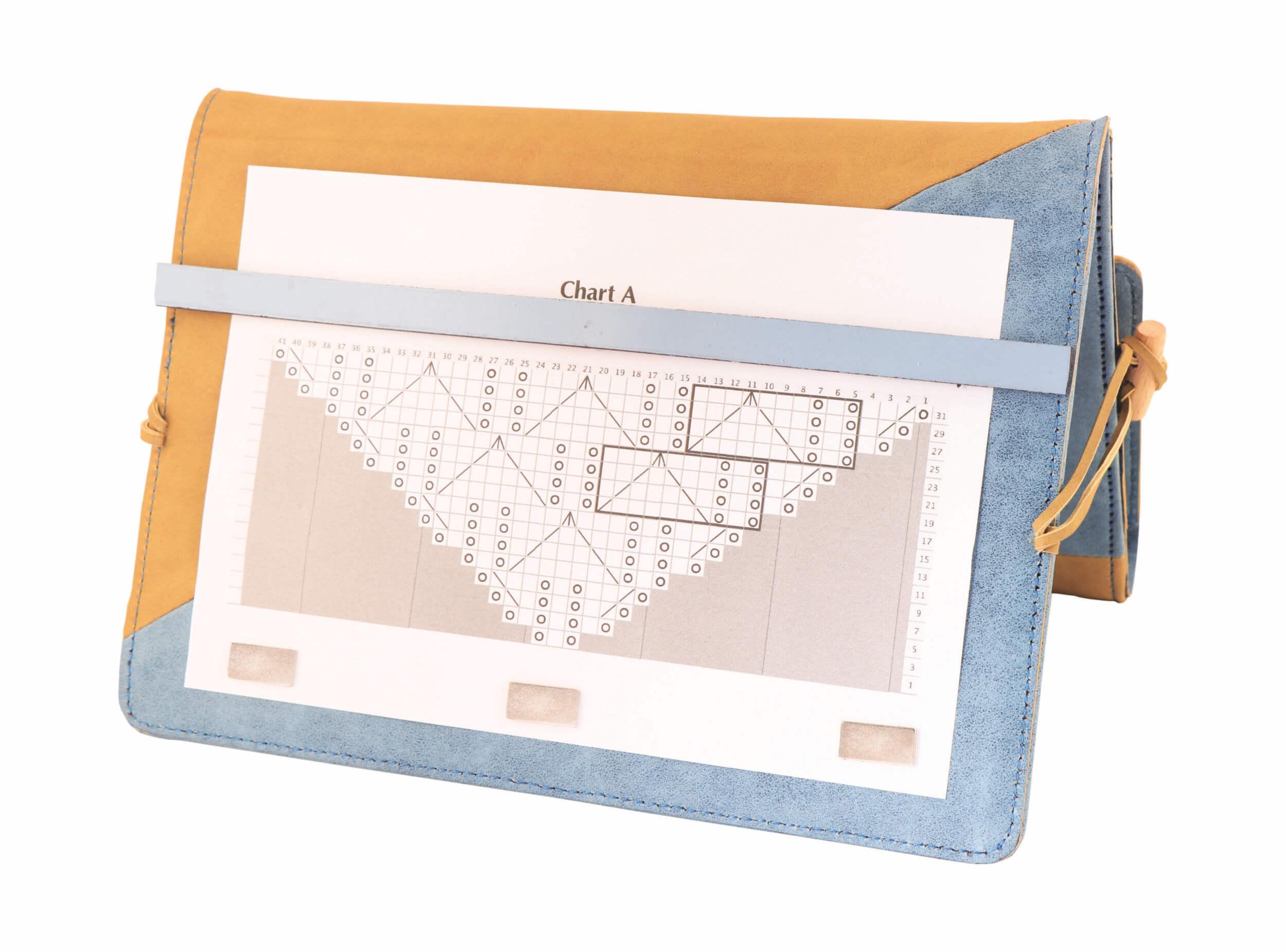 Чехол виготовленний з матеріалів преміум якості. Він служить не тільки для зберігання спиць, але також є підставкою-тримачем для схем. За допомогою невеликих магнітів схема закріплюється на підставці, а магнітна смужка дозволяє легко знайти потрібну схему.