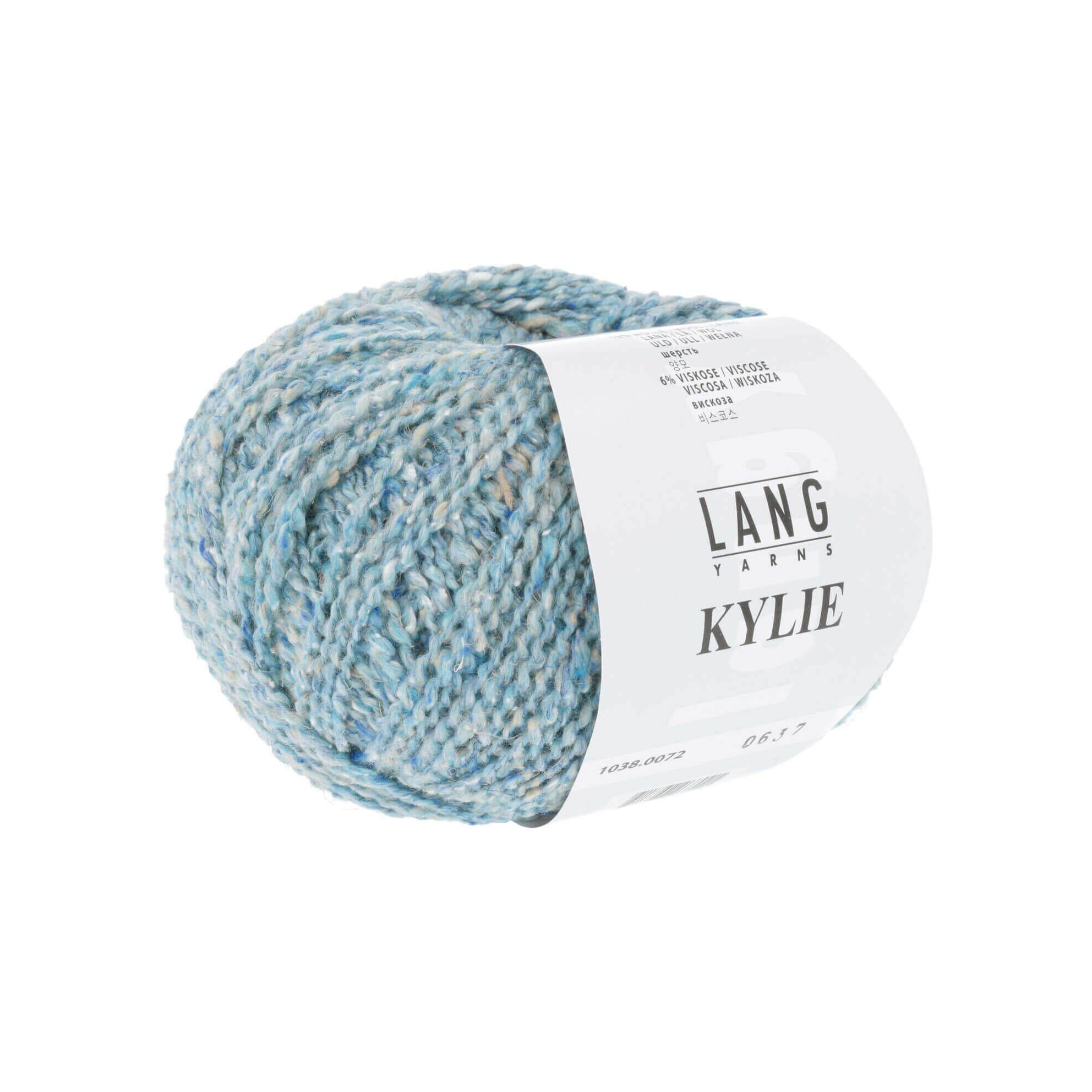 Lang Kylie – Натуральна пряжа зі 100% натуральних волокон: шовк, бавовна, вовна та віскоза. Завдяки цьому нитка дуже м’яка на дотик. Колірна карта складається з декількох пастельних, але також сильних і жіночних тонів. При в’язанні кольори м’яко переливаються один з одним.